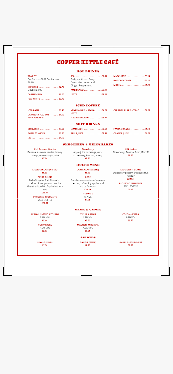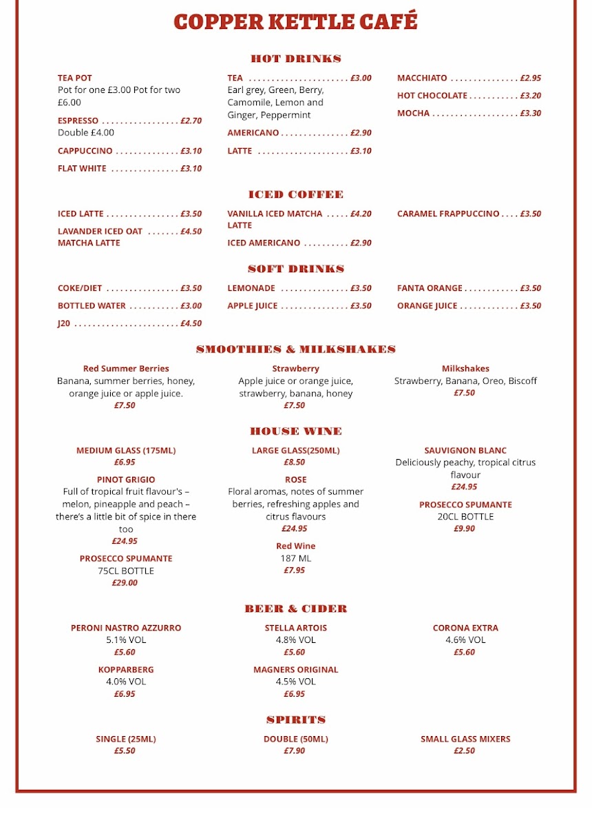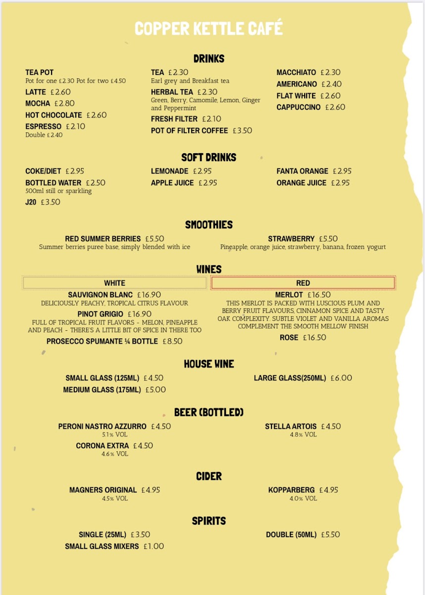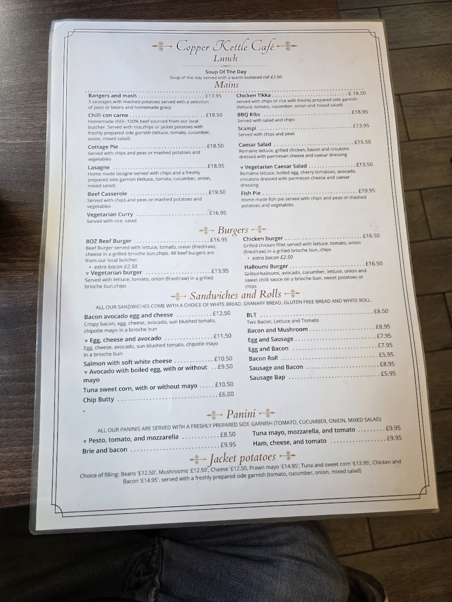 The Copper Kettle’s menu is a well-balanced mix of hearty classics and inventive twists, each dish reflecting careful attention to both flavor and presentation. Breakfast options like the Custom Full English Breakfast and Avocado Eggs Benedict cater to traditional and modern palates alike, while the Salmon and Avocado Waffle adds a creative flair that surprises without overwhelming. Lunch and dinner offerings are equally satisfying, with the Burger and Fries delivering comfort in every bite and the Fish and Chips maintaining a crisp, golden perfection. Sweet selections such as American Pancakes provide indulgence, and the light, refreshing Smoothie complements the heavier fare perfectly. For those seeking a touch of Scandinavian influence, the Pickled Herring with Potatoes offers a tangy, flavorful option that stands out among the menu’s variety. Each dish demonstrates The Copper Kettle’s commitment to quality ingredients and thoughtful preparation, making the menu versatile enough to appeal to both casual diners and those looking for something a bit more distinctive. Overall, the menu strikes a harmonious balance between traditional favorites and innovative creations, ensuring a memorable dining experience from the first bite to the last.